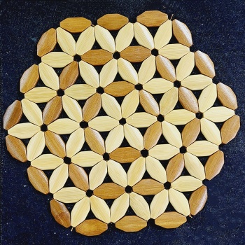زیر قابلمه ای بزرگ چوب بامبو گرد طرح گل