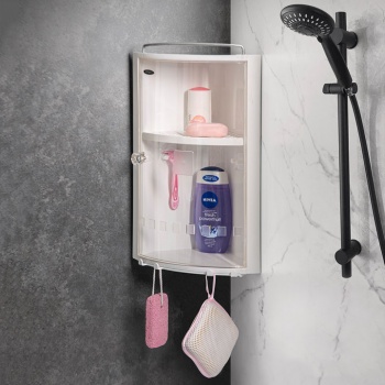 قفسه حمام لیمون limon مناسب برای لوازم حمام مانند شامپو و صابون و دارای آویز لیف